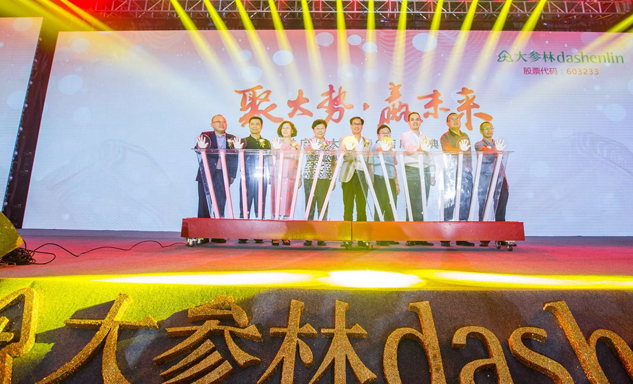 PA尊龙时凯药业集团董事长刘景萍女士与大参林医药集团董事长柯云峰先生、中国医药商业协会执行会长付明仲女士等嘉宾共同开启了“聚大势•赢未来"大参林工商合作峰会的大幕。
